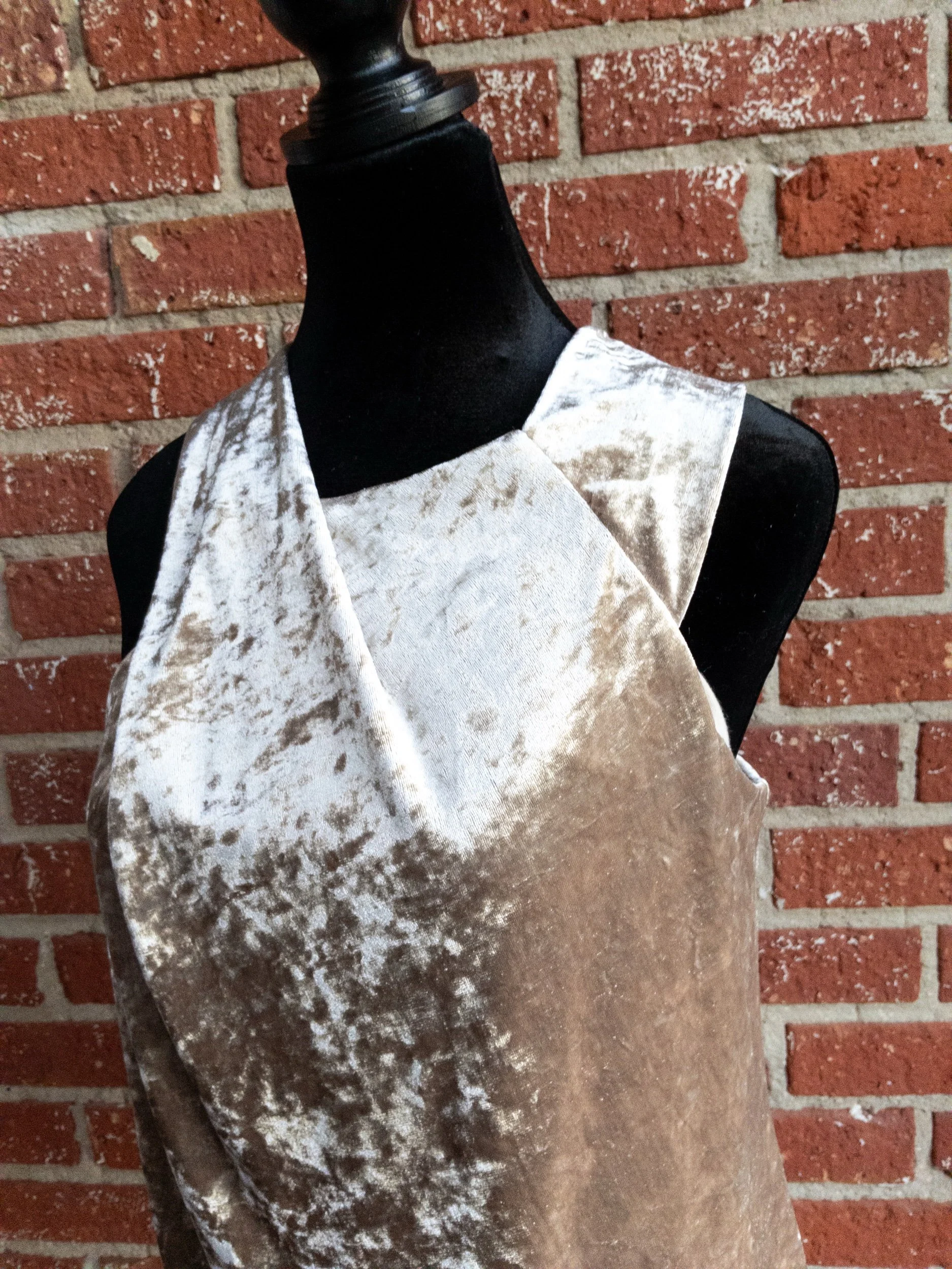 Champagne colored, crushed velvet sleeveless evening tank