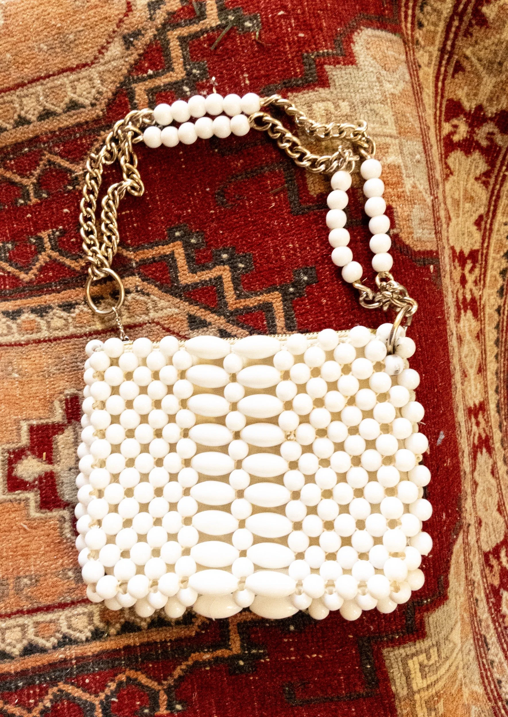 Vintage White Beaded Handbag