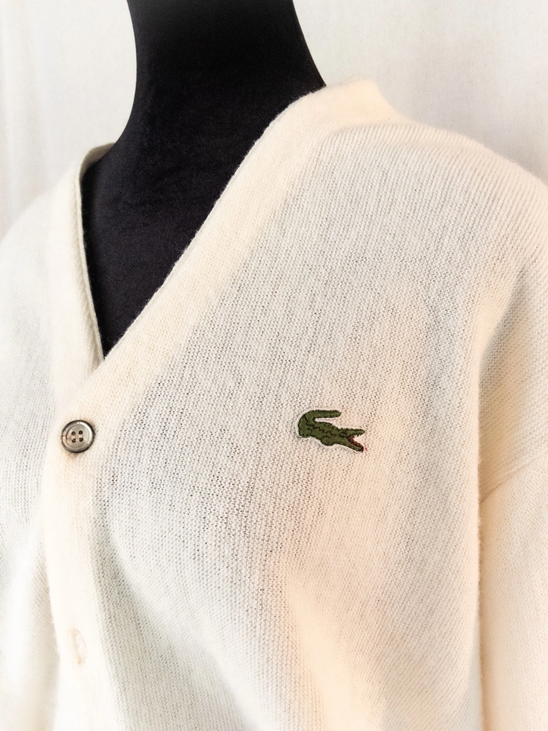 Image 1 of 3 Image 2 of 3 Image 3 of 3 Vintage 80s Izod Lacoste Cardigan (L) $69.00 Brand- Izod LacosteCream colored, button-up women’s cardiganClassic style, perfect condition100% Orlon Acrylic Length 27” Add To Cart Added! Brand- Izod LacosteCream colored, button-up women’s cardiganClassic style, perfect condition100% Orlon Acrylic Length 27”